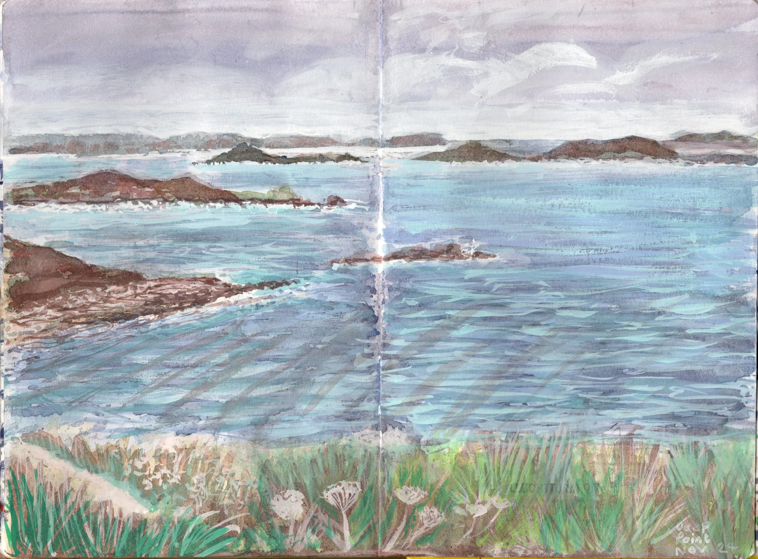 Documenting my travels with illustrations in my sketchbook, using brush pens, paint pens, ink and watercolour.